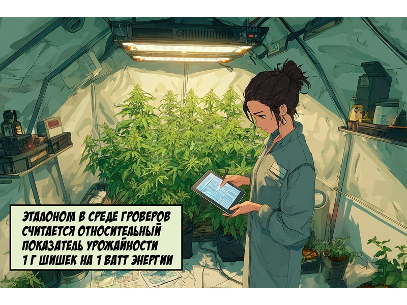 Эталоном в среде гроверов считается относительный показатель урожайности 1 г шишек на 1 Ватт энергии, но на то это и эталон - его не всегда удается достичь. Примерные ориентировочные значения, от которых можно отталкиваться (с учетом всех ранее изложенных факторов) при определении требуемой мощности света для получения того или иного объема урожая: